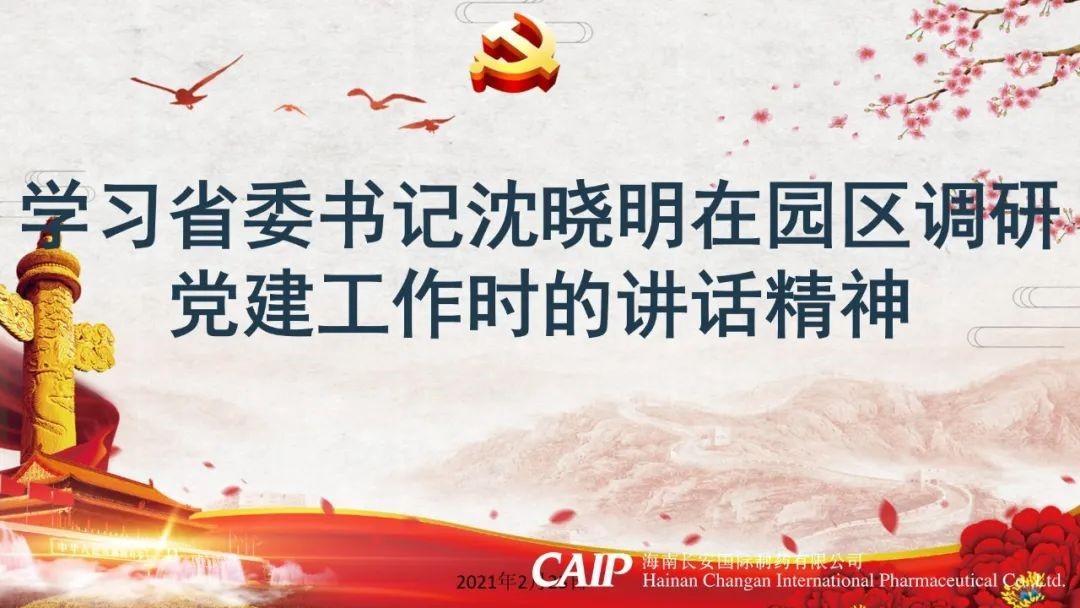 2月23日上午,長安制藥黨支部聯合長安制藥美安科技新城新廠建設項目臨時黨支部,在黨建會議室開展了“學習省委書記沈曉明在園區調研黨建工作時的講話精神”的黨課學習活動。