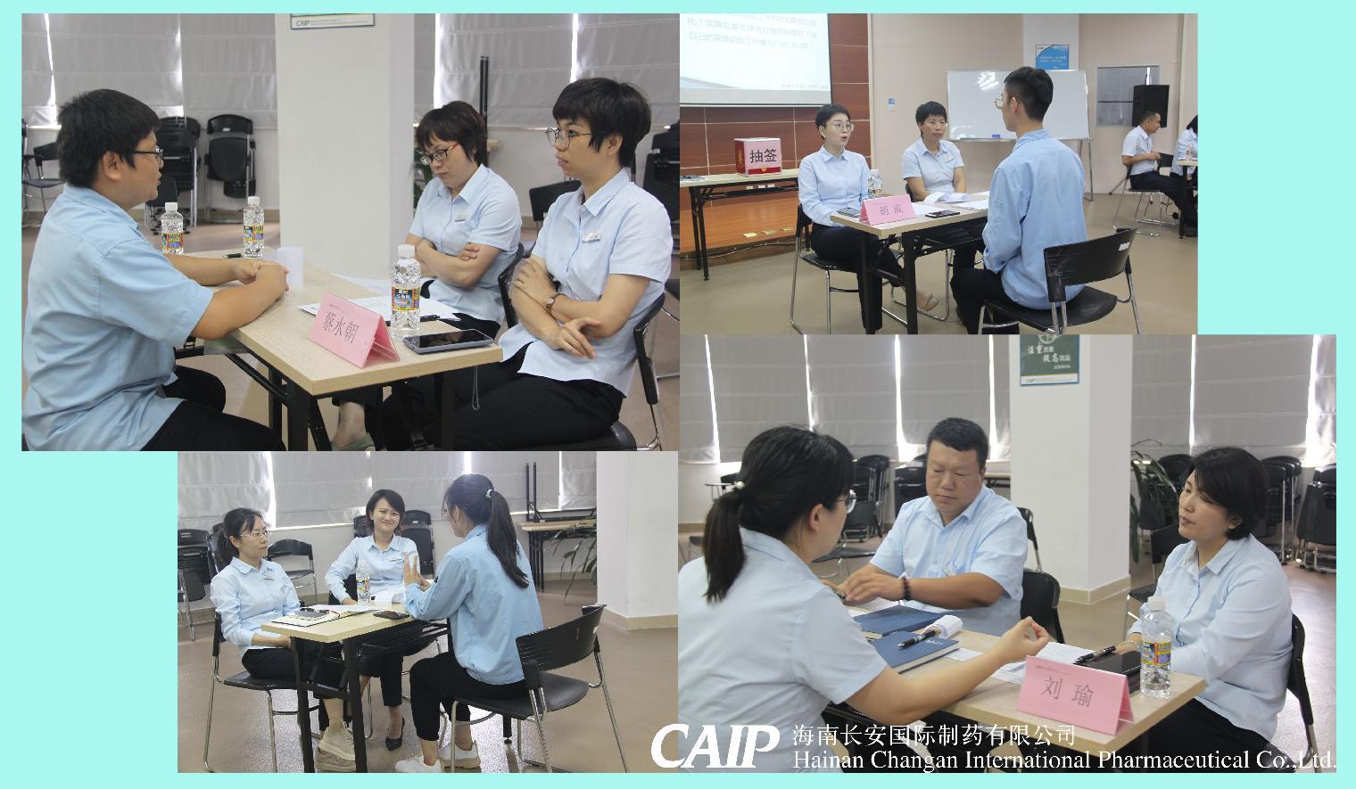 現(xiàn)場(chǎng)評(píng)估答辯分為三個(gè)環(huán)節(jié):自我介紹、現(xiàn)場(chǎng)必答題、抽簽答題。面試主考官由長(zhǎng)安制藥中高層領(lǐng)導(dǎo)組成,每位新晉管理人員的面試主考官和第三個(gè)環(huán)節(jié)的答題都是由抽簽來(lái)決定,體現(xiàn)了公平公正公開的原則。