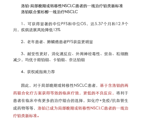洛鉑作為一線化療方案藥物連續4年被"CSCO原發性肺癌診療指南"推薦!